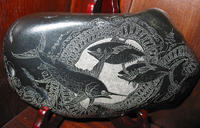 The rocks on which these mysterious creatures are hand-engraved come from the rugged, wave-battered beaches of North Atlantic and the gravel banks of rushing rivers, hidden deep within the Canadian wilderness. Hand-picked by Gilbert for their individual beauty in shape, form, and colour, these rocks are a pure natural phenomenon, perfect for the art of engraving.